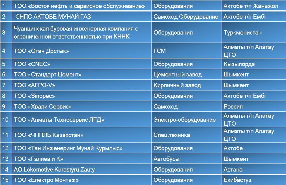 Опыт в 10 лет по поставкам оборудования, как на территории Таможенного союза, так и на территории Средней Азии (Кыргызстан, Туркмения, Узбекистан и т.д.). Так же можем оказывать услуги таможенного брокера.